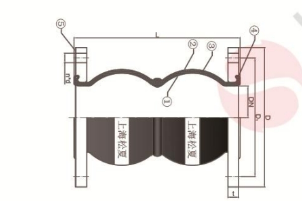 雙球體橡膠接頭是由內膠層、增強層有多層刮膠錦綸簾子布、外膠層復合的橡膠管組成的接頭,同樣的工作環境下,徑向和軸向的補償量均大于單球體橡膠接頭。